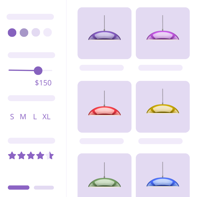 Filter by size, color, price, brand, or reviews. The easier the search, the faster the purchase. Save your customers time and improve their experience.